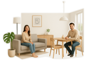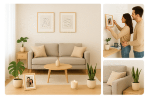 Minimalis bukan berarti rumah harus polos tanpa karakter. Justru, dekorasi yang tepat bisa membuat rumah kecil terasa lebih hangat dan “punya cerita”. Kuncinya adalah pilih sedikit, tapi bermakna.