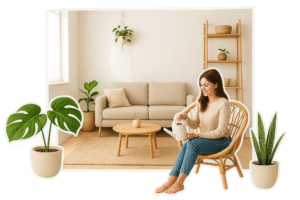 Rumah kecil bisa terasa sumpek kalau semuanya hanya dinding, furnitur, dan dekorasi buatan. Sentuhan alam sederhana seperti tanaman hijau bisa jadi “penyegar instan”. Tidak butuh banyak—cukup 1–2 pot tanaman kecil di ruang tamu atau kamar tidur, suasana langsung berubah lebih hidup.